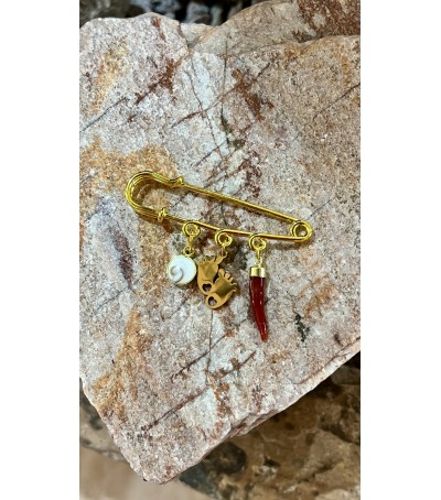 Brooch in 925 Sterling Silver, with a safety pin, made with the true Mediterranean Eye of Saint Lucia.