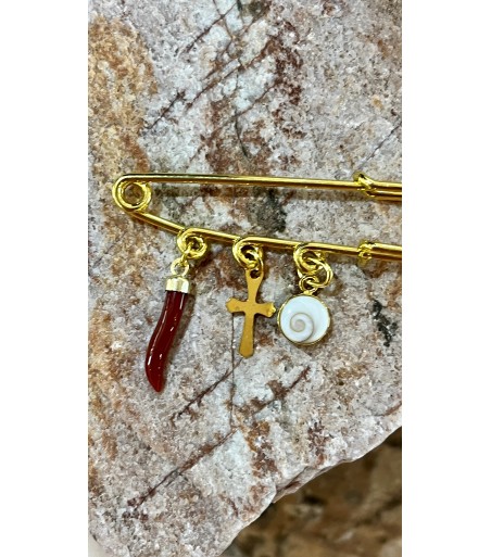 Brooch in 925 Sterling Silver, with a safety pin, made with the true Mediterranean Eye of Saint Lucia.