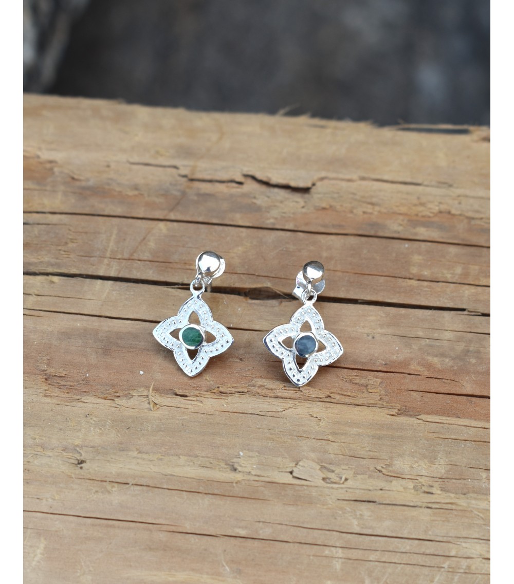 Boucles oreille en argent massif 925/ème, réalisé avec le Vert d'Orezza, rare pierre semi-précieuse de Corse.