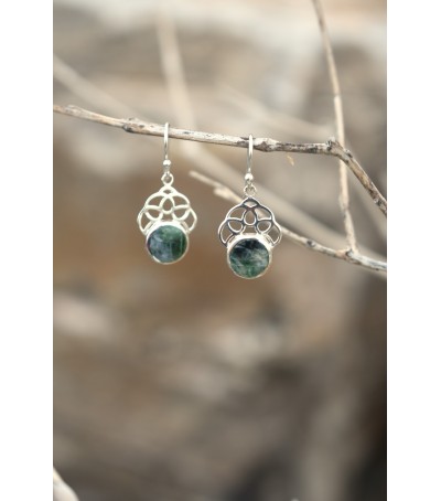 Boucles oreille en argent massif 925/ème, réalisé avec le Vert d'Orezza, rare pierre semi-précieuse de Corse.