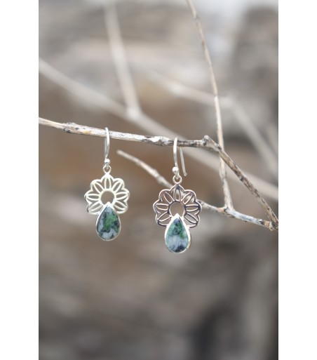 Boucles oreille en argent massif 925/ème, réalisé avec le Vert d'Orezza, rare pierre semi-précieuse de Corse.