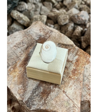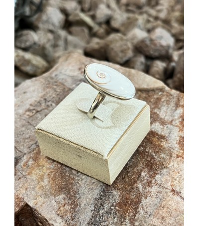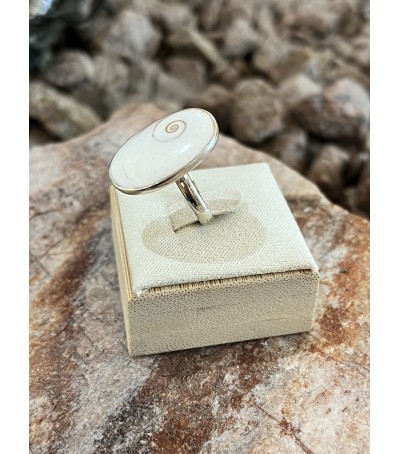Bague en argent massif 925/ème, réalisée avec le véritable oeil de Sainte Lucie de Méditerranée.