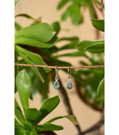 Boucles oreille en argent massif 925/ème, réalisé avec le Vert d'Orezza, rare pierre semi-précieuse de Corse.