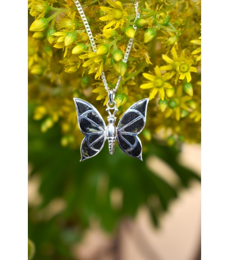 Pendentif "papillon" en argent massif 925/ème, réalisé avec la Serpentine Verde Stella du Cap Corse