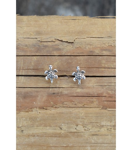 Paire de boucles d'oreille "tortue" en argent massif 925/ème