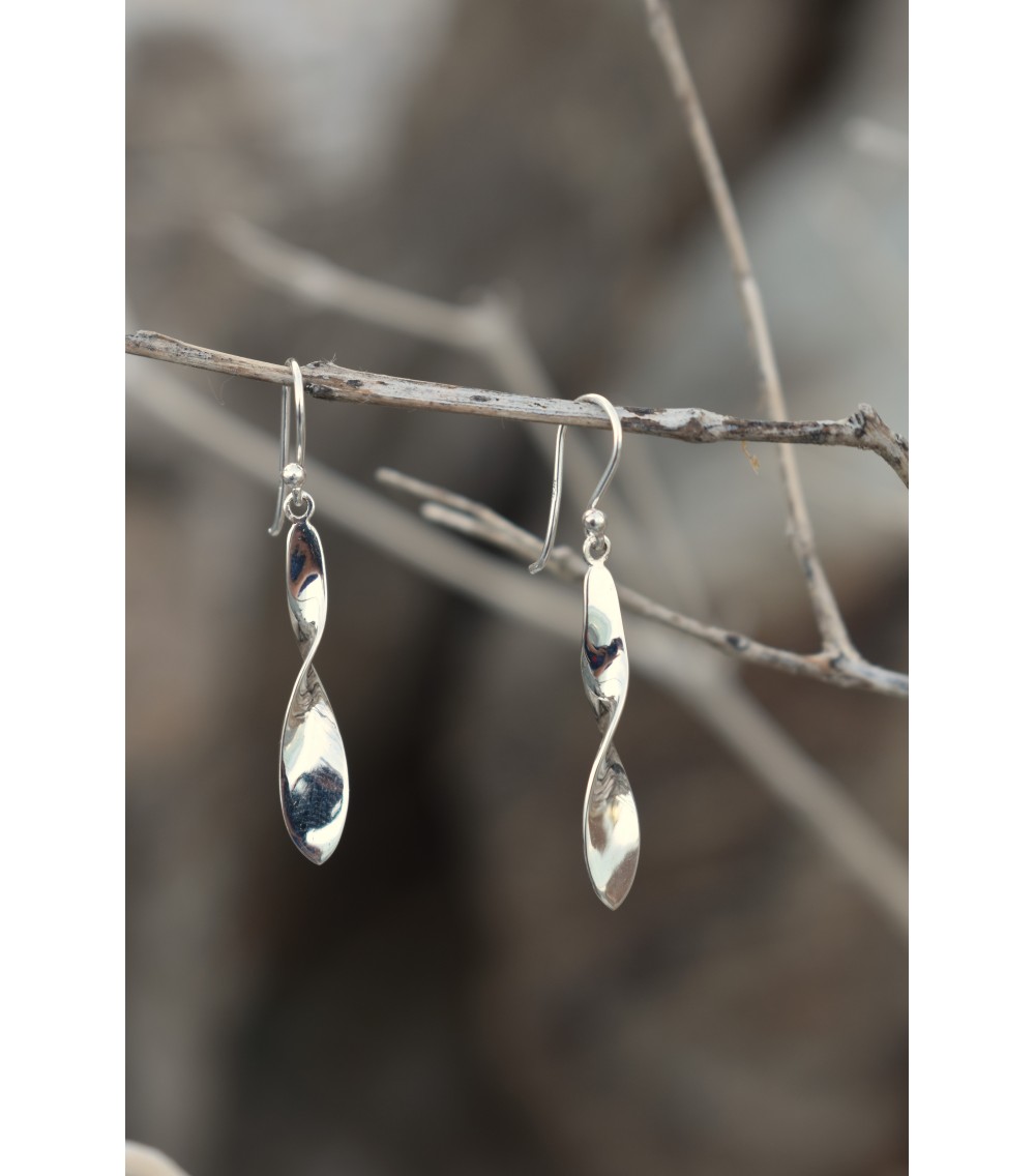Paire de boucles d'oreille torsadée en argent massif 925/ème texturé.