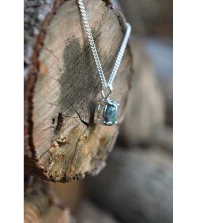 Pendentif en argent massif 925/ème, réalisé avec le Vert d'Orezza, rare pierre semi-précieuse de Corse.