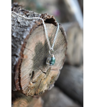 Pendentif en argent massif 925/ème, réalisé avec le Vert d'Orezza, rare pierre semi-précieuse de Corse.